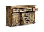 Kanti: Large Sideboard Introducing our Large Sideboard: a rustic statement piece for your home. Crafted from solid mango wood with a natural rustic finish, this sideboard exudes warmth and character. Purposeful distressing adds charm, while...