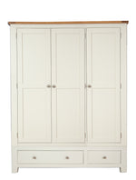Crafted with a natural Oak top and a robust MDF/Pine painted ivory base, this wardrobe features a sturdy 28mm thick top for enduring durability. The tapered legs not only provide stability but also add a touch of sophistication to the design. Simple knob handles make access easy, while the inclusion of one large drawer and one smaller drawer offers extra storage options for your belongings.